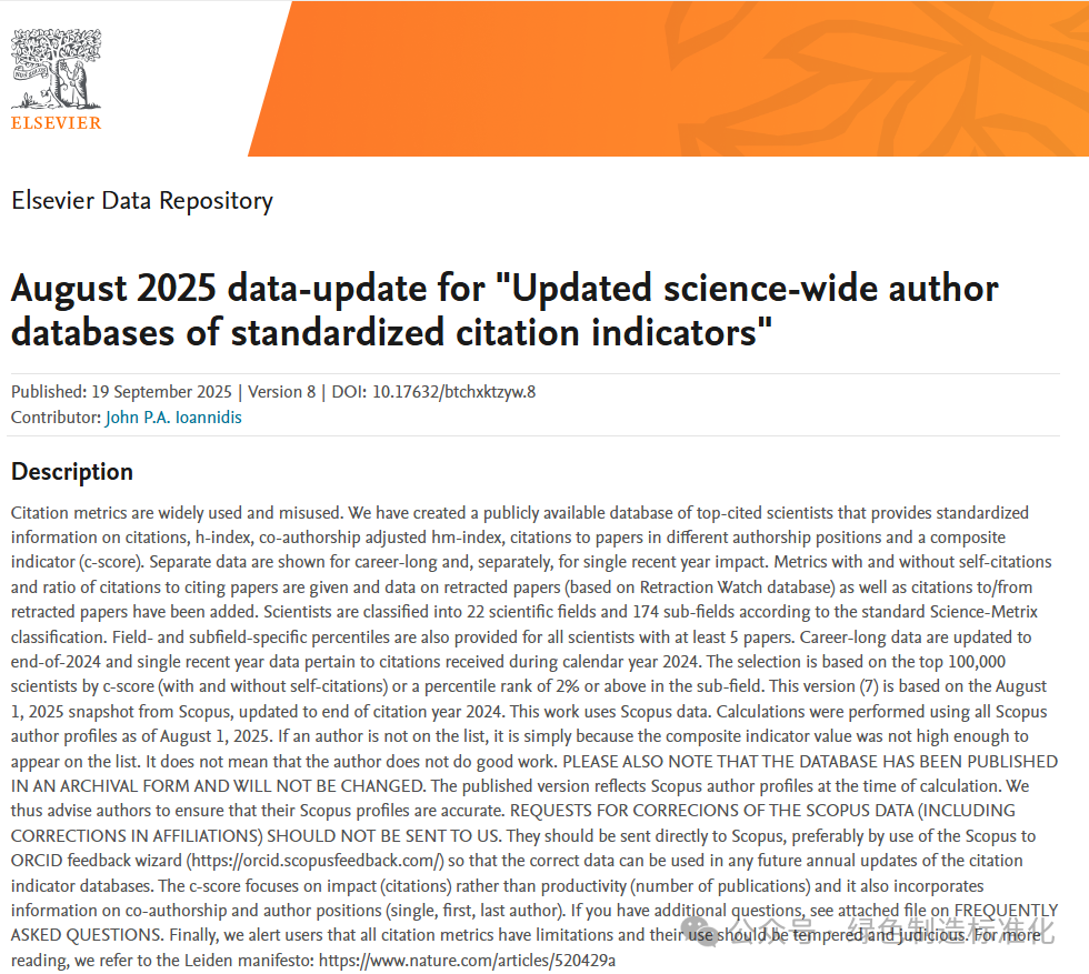 日前,美国斯坦福大学发布了2025年全球前2%顶尖科学家榜单(World's Top 2% Scientists),beat365在线体育,beat365在线体育院长张全国教授再次成功入围“终身科学影响力榜单”(关注整个学术生涯迄今的影响力)和“年度科学影响力榜单”(聚焦本年度的学术成就),成为继2022、2023和2024年度之后的第4次入围。该榜单由斯坦福大学John P.A. Ioannidis教授团队联合国际权威学术出版社Elsevier发布,基于全球约一千万科学家的论文引用数、h指数(全称“H-index”,用于评估研究人员的学术产出数量与学术产出水平)、合著者调整的hm指数、单独或第一作者的文章引用数等综合参数,反映科学家的产出量和学术影响力,收录了来自22个学科领域、174个子学科领域全球排名2%的科学家。